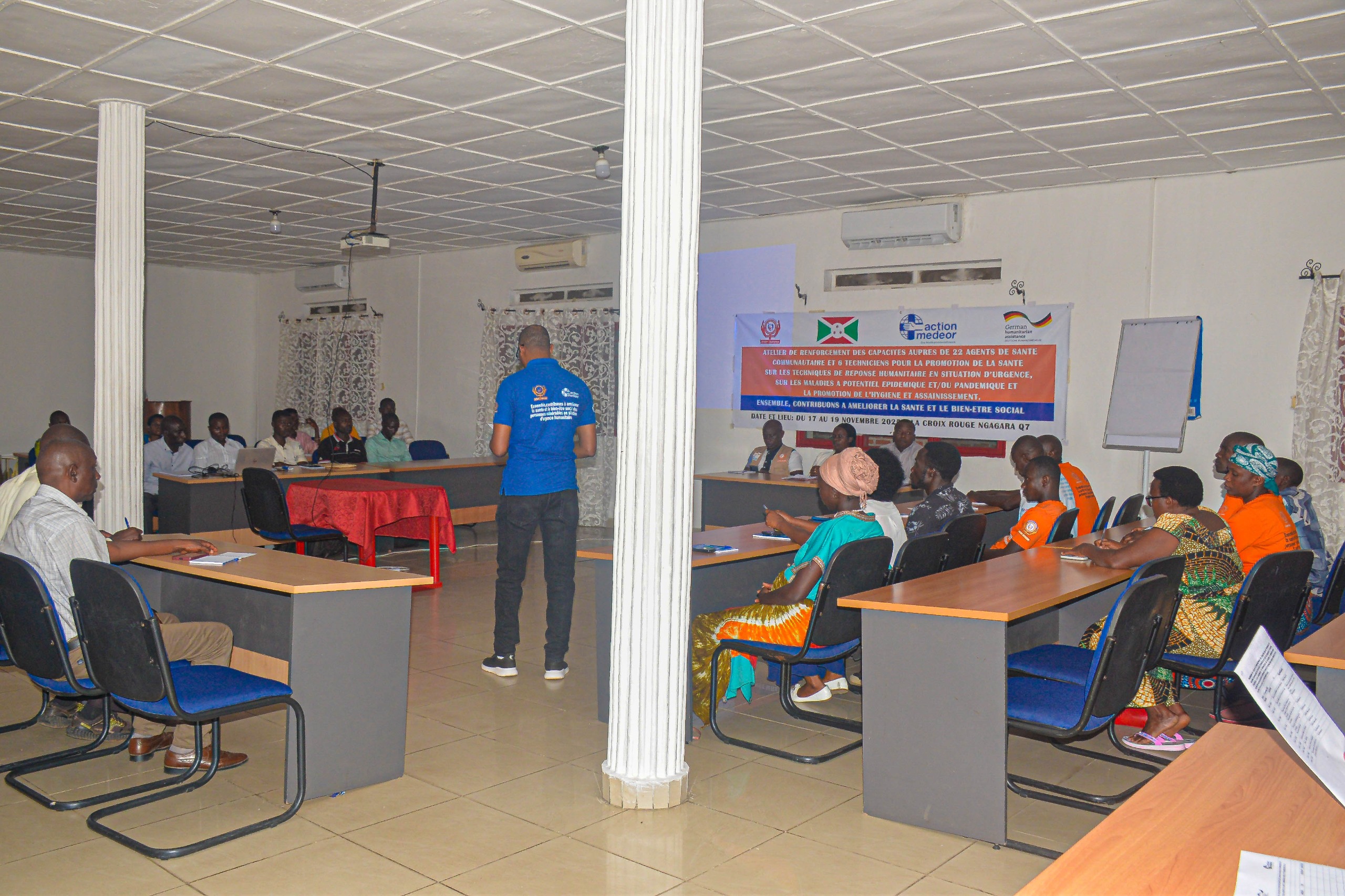 Les Techniciens pour la Promotion de la Sante et les Agents de la Sante Communautaire dans la salle de formation Mme Espérance Ntirampeba, représentante légale de la S SFBSP rappelle qu’il s'observe encore des défis dans le secteur de la santé notamment la persistance des maladies comme la malaria, la tuberculose, le VIH Sida et les maladies liées au manque d'hygiène. Il s’agit du le Mpox, de la Rougeole, du choléra, etc.